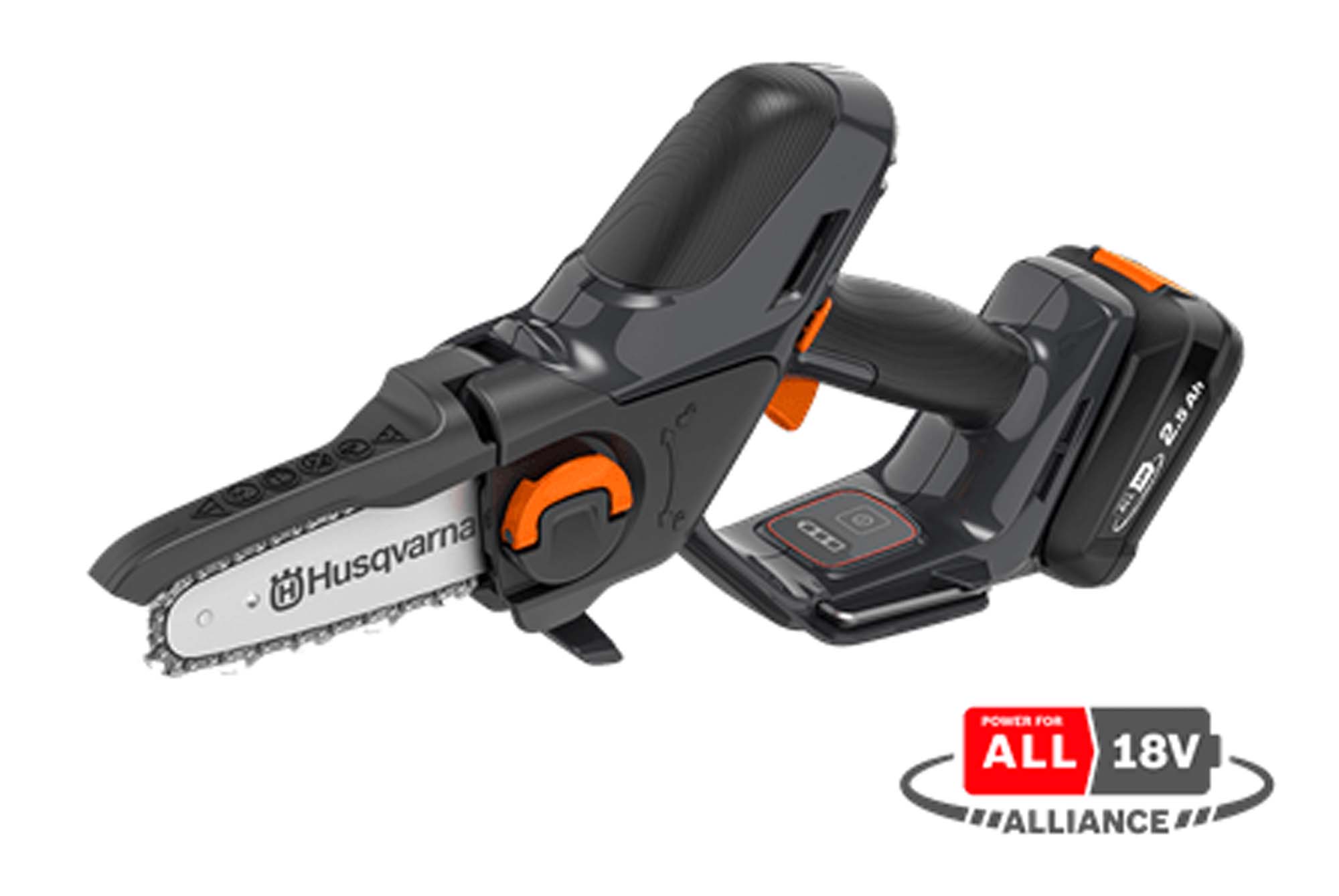 Μικρό πριόνι κλαδέματος μπαταρίας χειρός, ιδανικό για κλάδεμα δέντρων, κοπή απορριμμάτων κήπου και μικρότερες ξυλουργικές εργασίες. Χτισμένο με την αποδεδειγμένη τεχνογνωσία μας στο αλυσοπρίονο, αυτό το ολόπλευρο μίνι αλυσοπρίονο κλαδέματος είναι αρκετά στιβαρό ώστε να κόβει εύκολα κλαδιά πλάτους 75 mm. Εξοπλισμένο με εύκολη και χωρίς εργαλεία αντικατάσταση αλυσίδας και ράβδου και βελτιωμένη ασφάλεια με αντιολισθητική λαβή και αυτόματη απενεργοποίηση όταν αφήνεται χωρίς επίβλεψη. Η αποθήκευση γίνεται εύκολα με το παρεχόμενο άγκιστρο και μέρος του συστήματος μπαταρίας 18V POWER FOR ALL. Λάδι Bio Chain περιλαμβάνεται στη συσκευασία (50ml). Τα εργαλεία που τροφοδοτούνται με μπαταρία Husqvarna Aspire έχουν αναπτυχθεί με περιορισμένο χώρο στο μυαλό. Αυτός είναι ο λόγος για τον οποίο κάθε προϊόν συνοδεύεται από ένα εξατομικευμένο άγκιστρο αποθήκευσης που μπορεί να τοποθετηθεί απευθείας στον τοίχο ή να χρησιμοποιηθεί με το σύστημα Husqvarna Aspire Storage Rail. Αυτή η αποθήκευση εργαλείων μπορεί να επεκταθεί με όλα τα εργαλεία κηπουρικής παράλληλα με το σιδηροδρομικό σύστημα Aspire. Αυτό το προϊόν είναι μέρος της POWER FOR ALL ALLIANCE και είναι συμβατό με πολλές άλλες μπαταρίες και φορτιστές από τις συμμετέχουσες μάρκες. Αυτό σημαίνει ότι χρειάζεται να αγοράσετε μόνο μία μπαταρία για όλα τα προϊόντα του σπιτιού και του κήπου σας.
