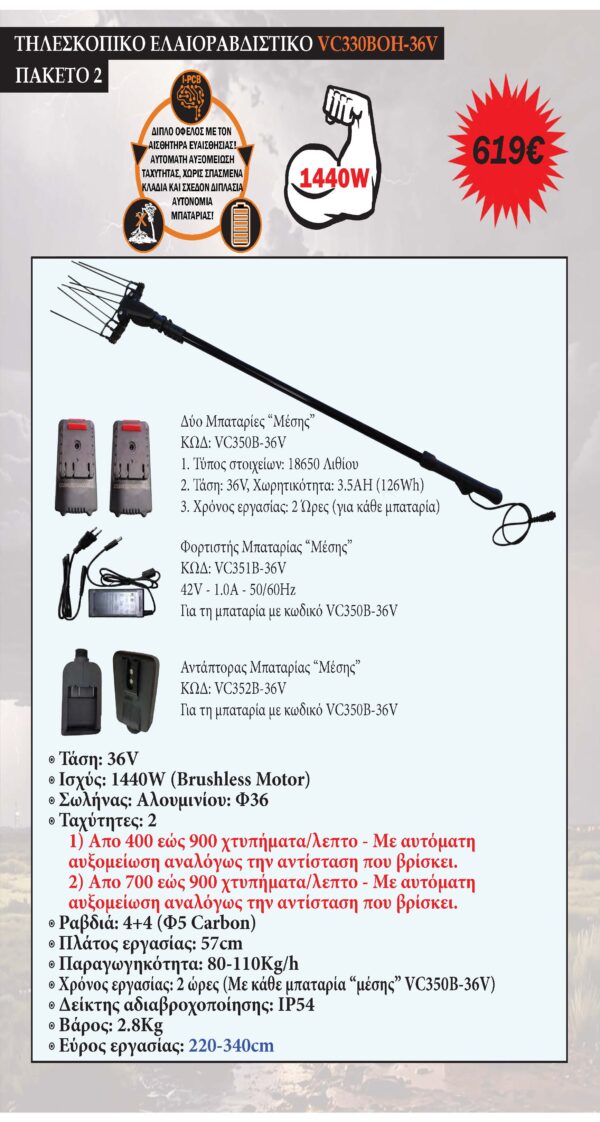 ΕΛΑΙΟΡΑΒΔΙΣΤΙΚΟ ΜΠΑΤΑΡΙΑΣ 36V-ΤΗΛΕΣΚΟΠΙΚΟ 2.2Μ-3.3Μ ΠΑΚΕΤΟ 2